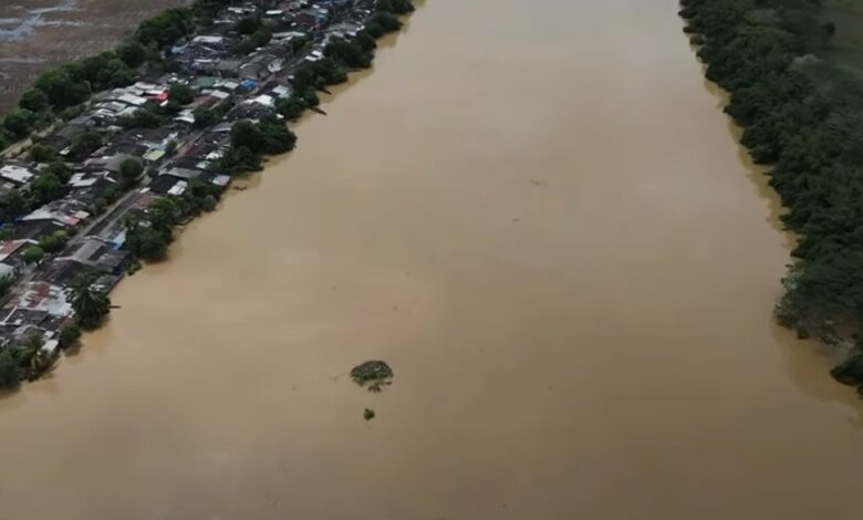 Imágenes aéreas muestran la magnitud del caudal del río y el impacto que genera en el sector 7 de Mayo, en el barrio Mocari.