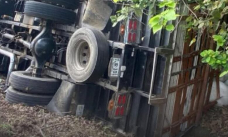Camión cargado con silo se volcó en vía Buenavista-La Apartada; conductor habría sufrido microsueño