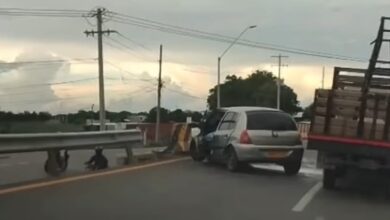 Un vehículo tipo sedan, se acaba de chocar con la baranda de la redonda de Mocarí, donde el conductor está…