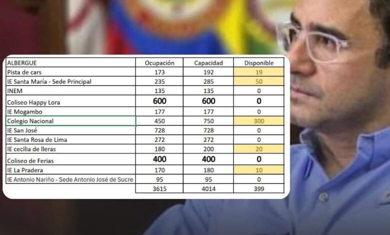 De acuerdo con el reporte oficial, los espacios que continúan recibiendo personas son la Pista de Karts, con 19 cupos; la Institución Educativa Santa María, sede principal, con capacidad para 50 personas; el Colegio Nacional, que dispone de 300 cupos; la Institución Educativa Cecilia de Lleras, con 20 cupos, y la Institución Educativa La Pradera, con 10 cupos. Las autoridades aclararon que los demás albergues habilitados previamente ya alcanzaron su capacidad máxima.