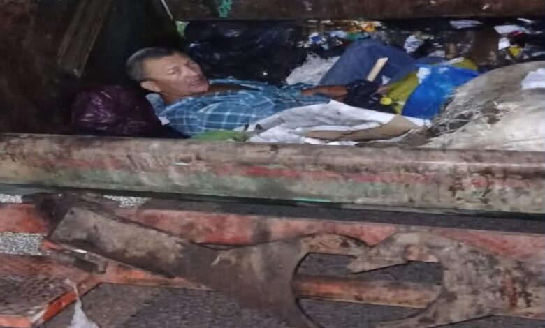 Un insólito accidente dejó atónitos a los habitantes del barrio Villa Esperanza, en Puerto Libertador, luego de que un hombre terminara dentro del contenedor de un camión recolector de basura tras colisionar de manera inesperada contra el vehículo.