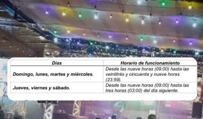 Según lo dispuesto, los establecimientos podrán operar hasta las 5:00 a. m. en fechas de alta actividad social: 5, 6, 7 y 8 de diciembre; jueves 11 y 21; domingos 14 y 21 de diciembre; del 24 al 28 de diciembre; del 31 de diciembre al 4 de enero; y el 6 de enero. Para los demás lunes, martes y miércoles no contemplados en el listado, el horario límite será la 1:00 a. m.