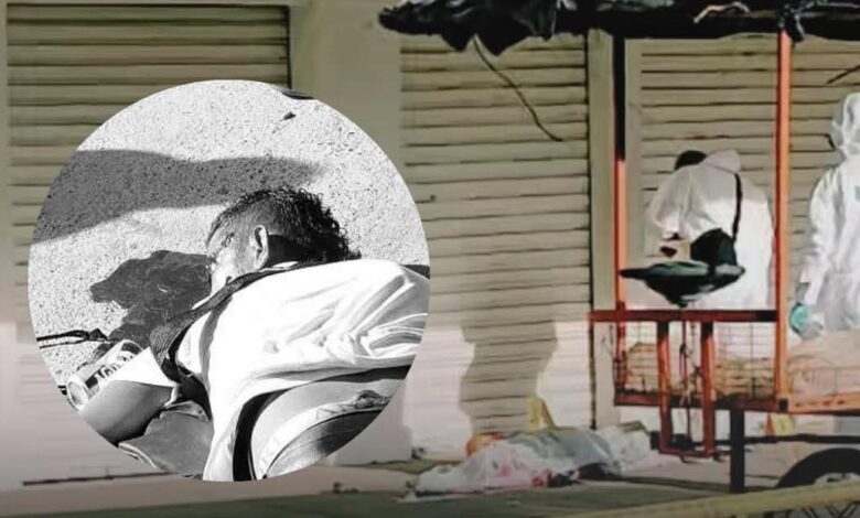 Víctima: En la imagen se observa el cuerpo de un hombre tendido en el suelo, rodeado de personal forense con trajes de protección.