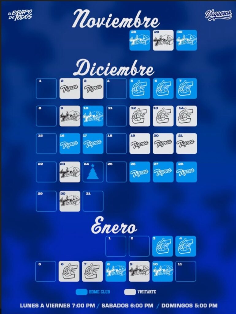 Vaqueros inicia esta nueva campaña con expectativas renovadas, una nómina reforzada y el respaldo de una afición que ha demostrado ser una de las más fieles del país. El conjunto monteriano llega preparando su estructura deportiva con jugadores nacionales e internacionales que buscan darle al equipo la solidez necesaria para competir por el título. La llegada de refuerzos extranjeros, sumada al talento local, convierte a Vaqueros en un rival de peso desde la primera jornada.